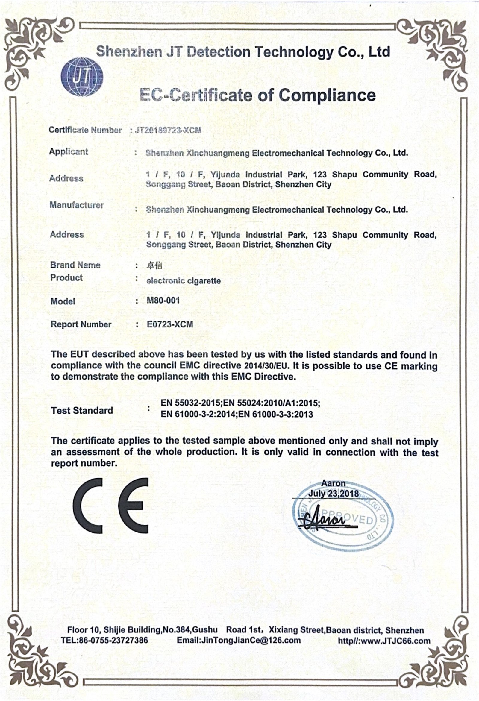 Our Certificate